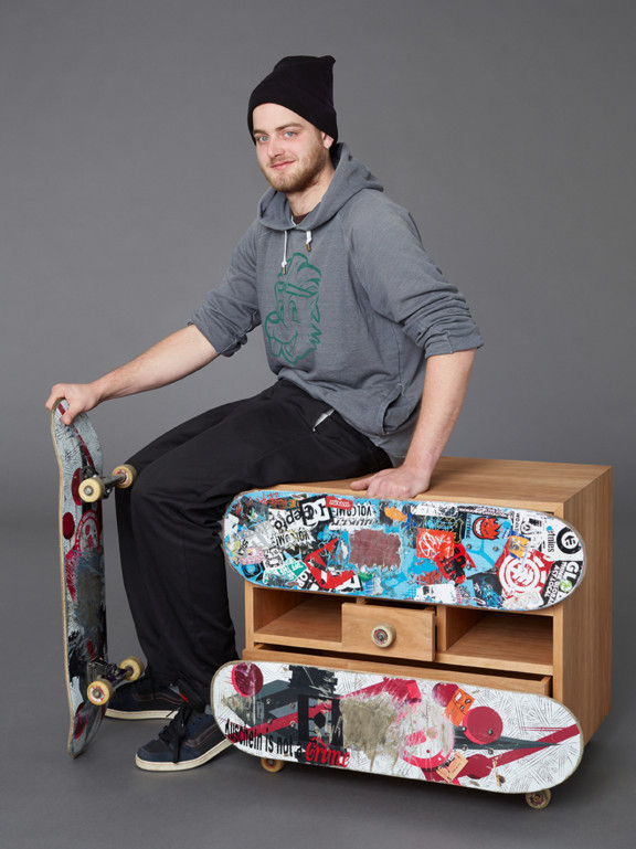 Ein Sideboard als TV-Schrank – mit drei Schubläden und zwei Skateboards als Blenden – bildet die Grundlage für den Korpus. […]